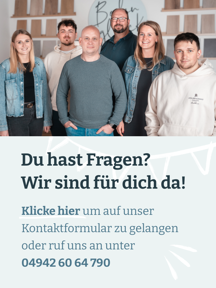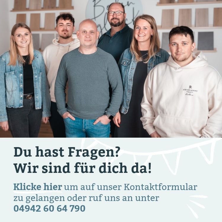 Spar dir einfach all die unendlichen, verwirrenden Optionen, mit denen dich gewöhnliche Anbieter meist alleine lassen. Die clevere Alternative? Wir machen es dir superleicht! Und bieten dir von Anfang an den einen Traumboden, bei dem du garantiert auf nichts verzichten musst! Damit du einfach, schnell und gut entscheiden kannst und alle lange glücklich damit sind.