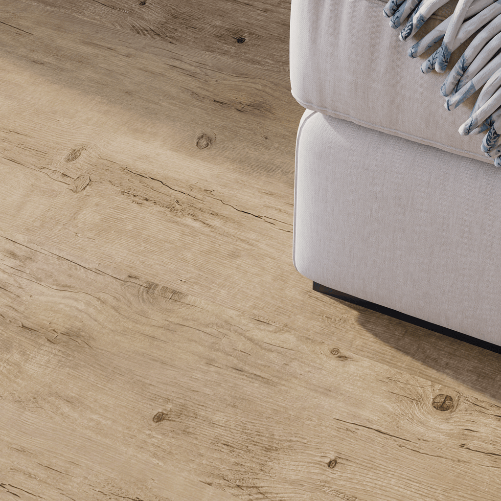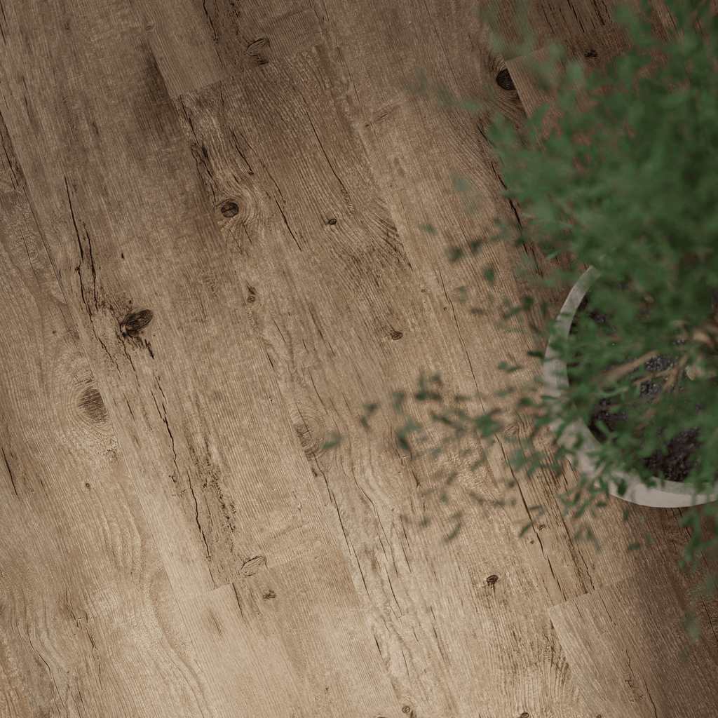 Verblüffend authentisch: Das rustikale Dekor ist für das Auge von echtem Holz kaum zu unterscheiden. Durch die aufwändige 3D-Synchronprägung wirkt jedes Detail auch beim Anfassen erstaunlich naturgetreu. So entsteht zusammen mit der V-Fuge und dem stimmigen Verlegemuster ein perfekter Gesamteindruck im stilvollen Dielen-Look. Auch für den Einsatz in Altbauten und bei niedrigen Türen ist der geringe Materialaufbau von 2,5 mm ein überzeugender Vorteil.