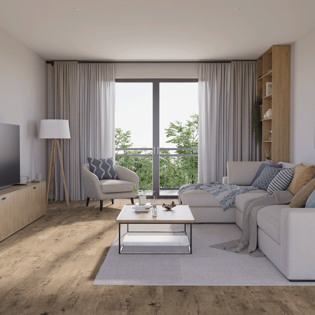 Bei der fachmännischen Verklebung des Bodens auf nivelliertem Untergrund entsteht eine vollflächige Verbindung mit dem Estrich. Trittschall hat dadurch keine Chance mehr und wird bei dieser Boden- bzw. Verlegevariante daher unschlagbar gut reduziert. Leiser geht es bei Hartböden quasi nicht. Mit unserem Klebe-Vinyl entscheidest du dich also auch für eine akustisch außergewöhnliche Wohnatmosphäre.