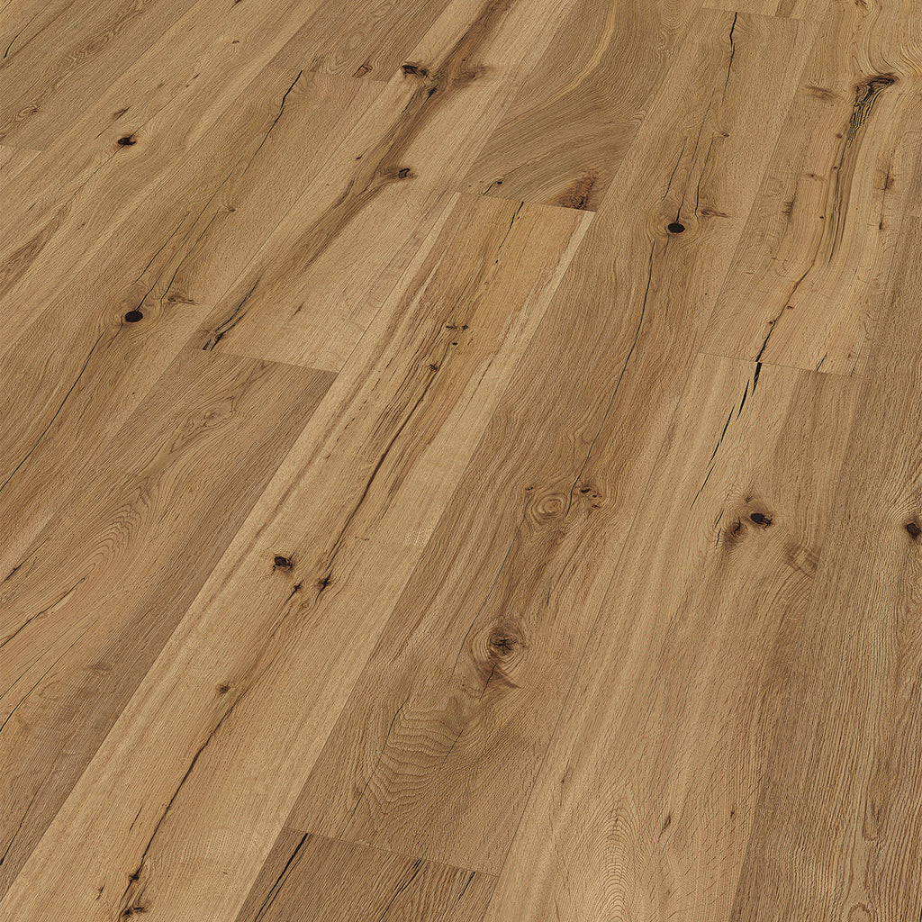 Dank des genialen Klicksystems fallen die Dielen ohne Kraftaufwand leicht und sicher ineinander. Zudem verlegst du deinen Traumboden wahlweise schwimmend, mit separater Dampfsperre und Trittschalldämmung darunter, oder verklebt (womit der Boden Trittschallwerte von bis zu 14 dB erreicht). Fußbodenheizung geht natürlich immer.